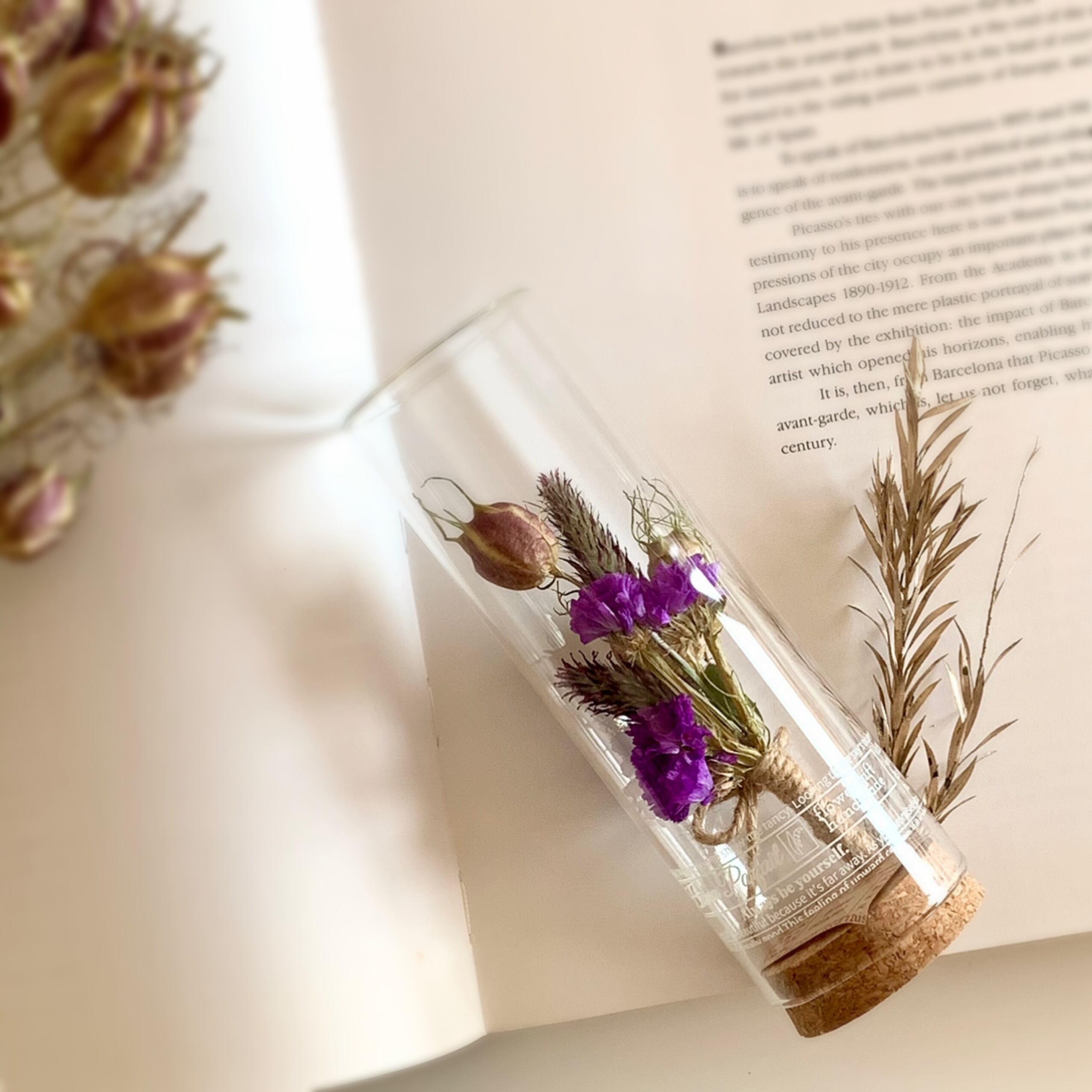 スターチスのボトルフラワー / 花言葉 しとやか 上品 / バイオレット / ドライフラワー / 植物標本 / 誕生日 / プチギフト / お供え / ペット 犬 猫 / お手入れ要らず / 枯れない花 / コルク瓶【無料ラッピング】 【ギフトボックス】 【メッセージカード】